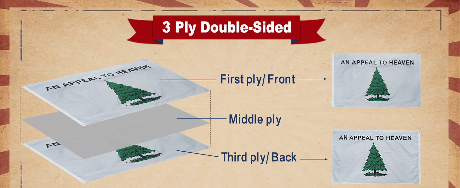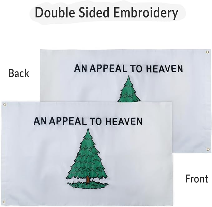 The Bradford Embroidered Appeal to Heaven Flag stands as a living emblem of faith, endurance, and conviction. Born from the fires of early struggle, it calls men to act on belief rather than permission. Its white field and green pine speak of perseverance through hardship. The bold words “An Appeal to Heaven” still challenge those who face tyranny with unwavering courage.