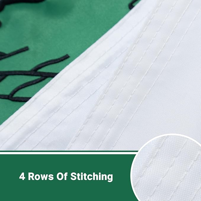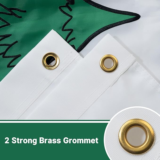 Four rows of stitching line every edge, which adds even greater reinforcement for heavy weather. Two solid brass grommets mount the header securely to poles or walls. In addition, the breathable fabric allows air to move smoothly, so the flag flies clean and true. As a result, it endures rain, sunlight, and time without losing its form or color.
