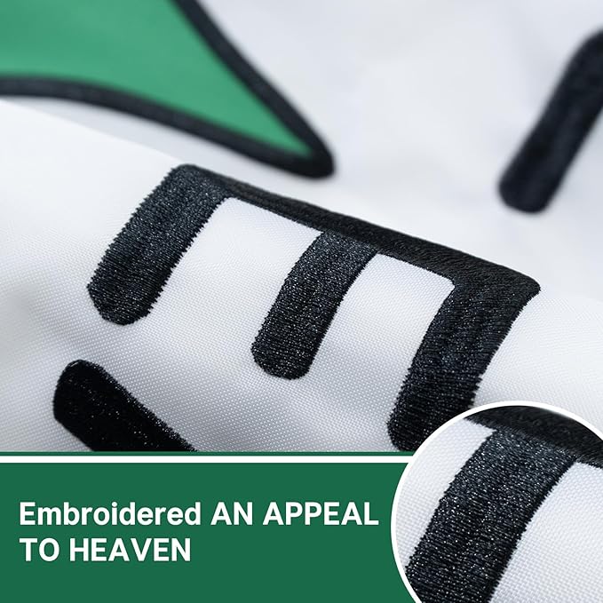 This flag measures 3 feet by 5 feet and uses three-ply polyester for maximum durability. Therefore, it withstands wind, rain, and sun with ease. The dense weave resists tearing during strong gusts, while the embroidery keeps every detail sharp and distinct. Because the design is fully embroidered on both sides, it remains vibrant from every angle. Moreover, the black lettering is stitched deep into the surface, giving the banner strength, structure, and definition.